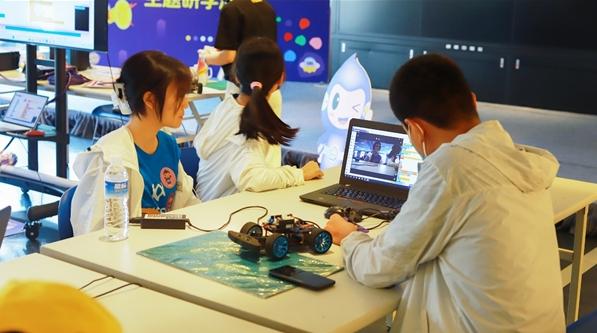 在无人驾驶体验学习环节,学生们在老师的带领下,学习如何让智能驾驶小车完成上下坡、交通标志识别等任务,感受人工智能在生活中的实际应用。