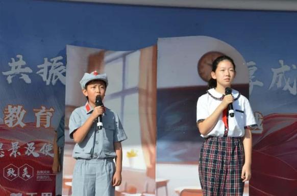 学校特邀沙峰老师和三位红领巾讲解员一同讲述英烈故事。沙峰老师为师生讲述左权将军的光辉事迹,他勉励同学们:“希望你们将抗战精神传承发扬,在校园里汇聚成璀璨星河,让红色声音传得更远、更响!”