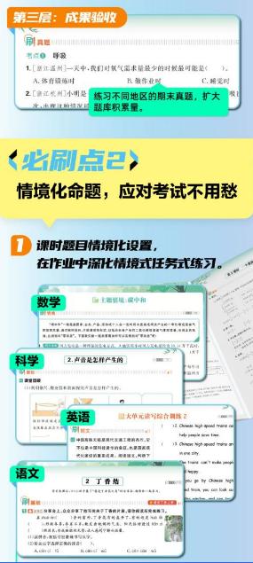 科学:前瞻考试趋势,复习更有效率。科学学科的单元“刷小结”栏目堪称“备考利器”:一边用思维导图梳理知识点,帮孩子建立知识框架;一边搭配前瞻性习题,比同类教辅更早把握考试风向标,让孩子应对考试更从容。