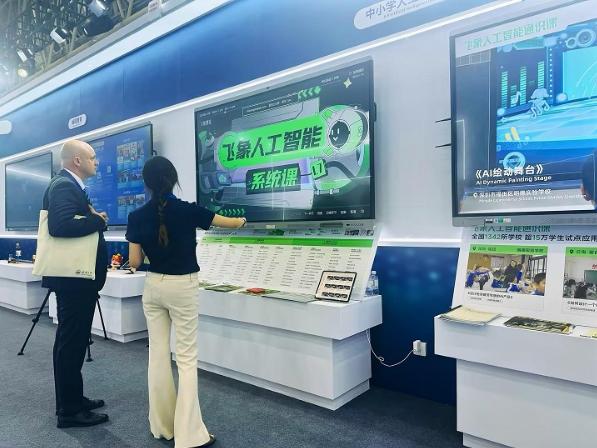 作为国内首个系统化落地的人工智能通识课程,飞象星球受邀亮相基础教育成果展台。据悉,这是今年4月教育部等九部门印发《关于加快推进教育数字化的意见》后,首个响应政策的教育数字化产品,课程贯穿中小学全学段,在北京、重庆、云南、内蒙等省市的1342个学校落地开展试点,已经有15万名学生参与其中。