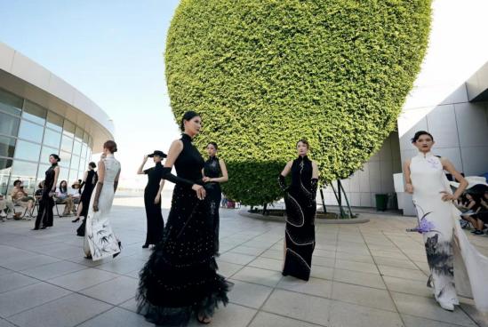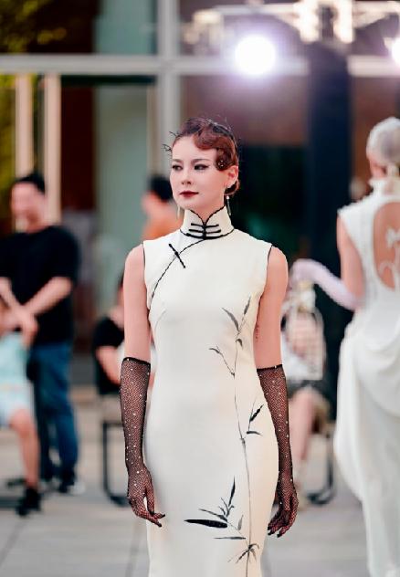 品牌远婷旗袍将整场大秀带入了一个静谧而富有韵味的境界。品牌坚持“一人一版,量体裁衣”,以手工盘扣、归拔塑形等非遗工艺,赋予每件旗袍以灵魂,展现了中华传统文化的旺盛生命力。