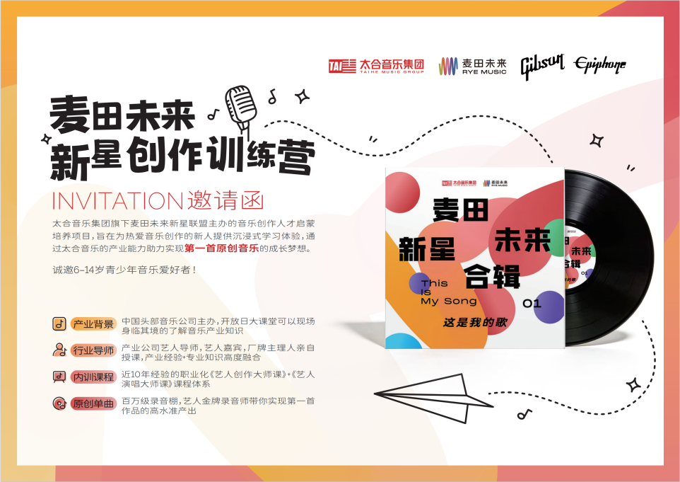 我们深知,孩子的音乐教育不是成人的缩小版。太合音乐集团旗下「麦田未来新星创作训练营」特别推出少儿音乐创作人才培养项目,以专业音乐集团的产业资源,为热爱音乐的少年儿童量身打造沉浸式学习体验。