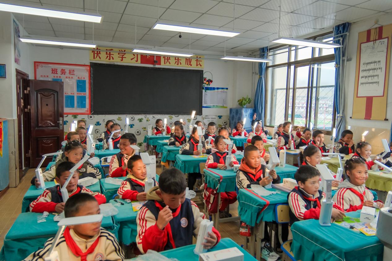 过往,古露镇小学教室照明长期不足,黑板在昏暗灯光下显得模糊,孩子们常常需要眯着眼睛看字,学习用品紧缺的他们,甚至要使用铅笔短到难以握持的程度。