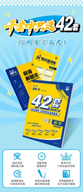 《高考必刷卷 42套》权威模拟卷汇编:汇集全国各省市的 “大市模拟卷、强区联考卷、名校联考卷”,这些试卷由一线名师命题,题型、难度、考查重点均高度契合高考大纲,让考生接触到 “贴近高考的训练素材”;试题新颖时效性强:所有试卷均筛选自应届高三生备考阶段的新模拟卷,涵盖当年高考的热点方向与命题趋势,避免使用 “过时旧题” 导致训练偏离方向;