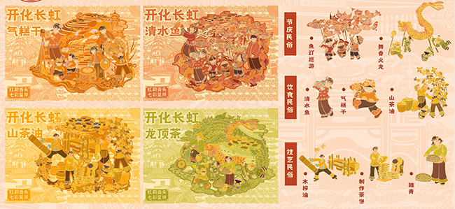 此次比赛特等奖的获奖团队,来自浙江师范大学的团队带来的七彩呈祥系列作品,围绕长虹乡气糕干、清水鱼、山茶油等系列生态农产品进行包装设计。“我们团队深入走进本地了解状元文化、星空文化、民俗文化、建筑文化等多元文化,依托阿里云PAI-ArtLab平台的AIGC技术和云工开物算力资源,聚焦产品外观设计领域,投入农民画风格参考图,结合开化长虹乡主题让AI生成类似风格插画元素,最终形成贴合需求的包装插画,完成系列农特产品的包装升级。” 本文来自www.Chinaedunet.com