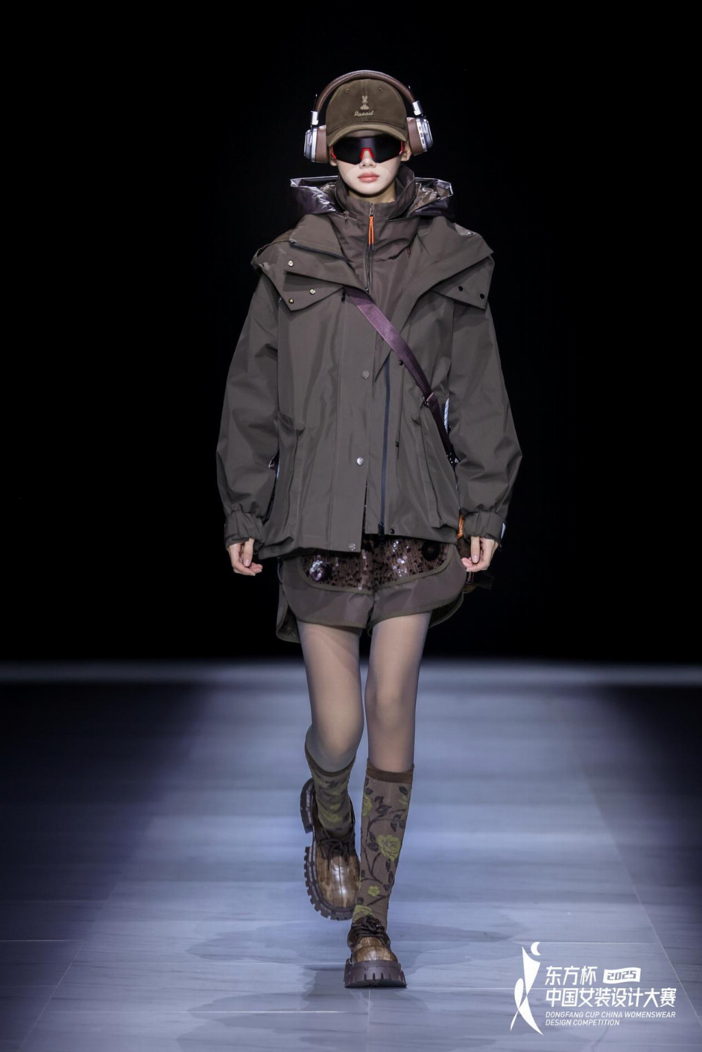 另外一组银奖获奖作品《秋日物语》由设计师闵立波创作而成,他以秋日景致为灵感,将户外机能与少女甜美风融合,打破同质化。通过短款冲锋衣、机能长裙等款式,搭配蕾丝、褶皱细节,兼顾轻户外活动与都市社交穿搭。面料则选用盛泽温变科技面料与可同色数码印花的反光面料,强调时尚感、实用性与秋日氛围。 copyright www.chinaedunet.com