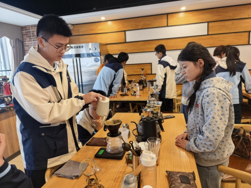 研学团随后走进成都市中和职业中学,参与咖啡社、扎染社、调酒社、舞蹈社等社团课程,体验多样化校园文化,拓展综合素质。师生们还走访了四川省蓉府藏文典籍博物馆,深入了解典籍保护与民族文化传承实践,进一步坚定文化自信。