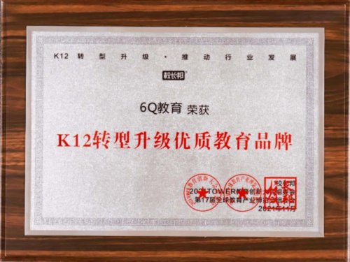 2021年,被TOWER教育创新大会评为“K12转型升级优质教育品牌”