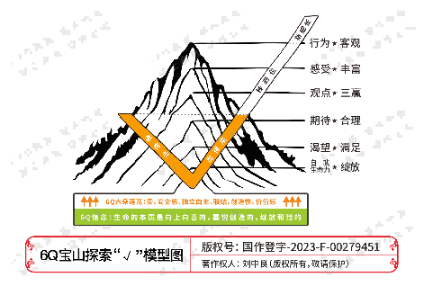 带着这份思索,6Q刘中良从“德智体美劳”全面发展的教育方针中汲取灵感,经大量个案实践研究,创造性提出“6Q”培养体系:以SQ(灵性商数,爱与感恩能力)为根基,EQ(情感商数,情绪管理能力)为引擎,IQ(智力商数,理性思维能力)为支撑,CQ(创造力商数,创新创造能力)为突破,AQ(逆境商数,抗挫折能力)为保障,RQ(资源管理商数,资源整合能力)为延伸,最终形成“身、心、灵”和谐发展的人才培养模型。