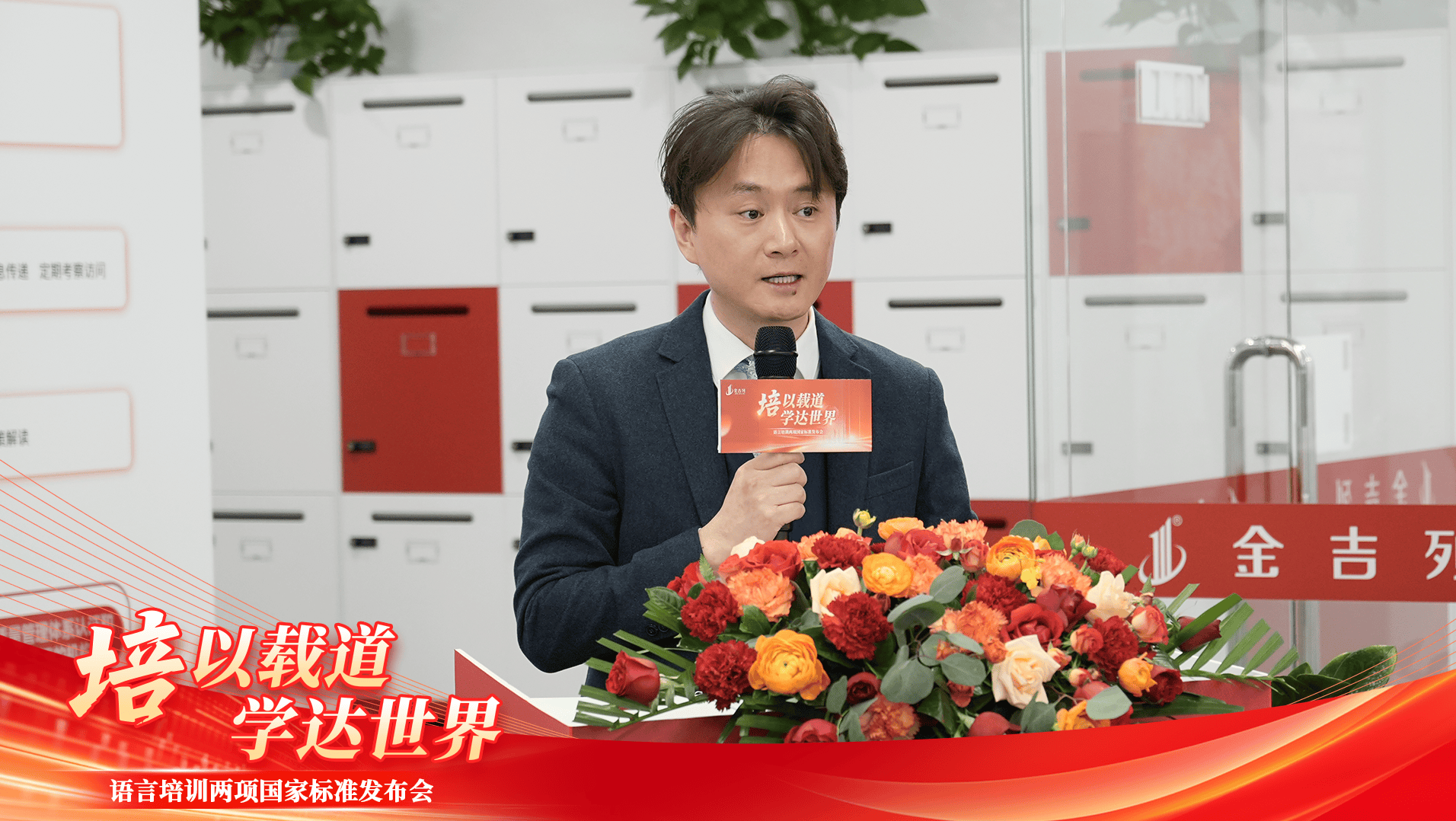 发布会现场气氛热烈,金吉列语培优秀教师代表与学生代表先后登台,从教育实践与学习体验双重视角,分享了两项国家标准对语言培训领域带来的深刻影响与实践心得。金吉列语培教学经理邓琰先生认为,两项标准的发布为教学评估提供了科学依据,使个性化教学方案的制定更具针对性,有效促进教学质量的精准提升。