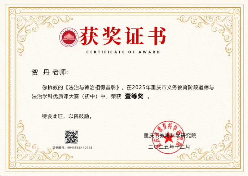 2025年的辉煌成绩,是优质课双冠的高光引领,更是全员耕耘的实力沉淀;是获奖教师的标杆示范,更是全体同仁的协同发力。每一项荣誉的背后,都凝聚着对思政教育事业的赤诚与坚守;每一步前行的路上,都离不开团队的同心同德与默默付出。展望未来,巴蜀中学初中道德与法治教研室将继续以优质课大赛的奋进姿态为动力,坚守育人初心、深化教学改革、创新育人载体,让每一位教师都能在思政教育的沃土上实现价值,让思政教育真正成为培育担当民族复兴大任时代新人的强大力量,续写更加精彩的育人篇章! copyright www.chinaedunet.com