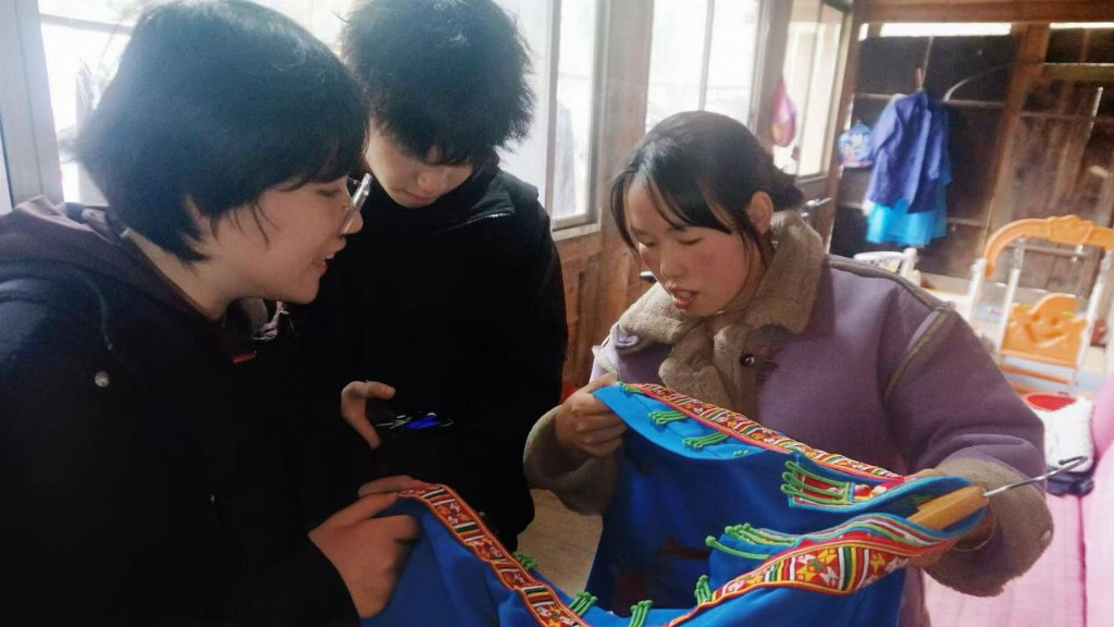 课程结束后,师生团队在猴背村第一书记的带领之下,来到了瑶绣非遗传承人家中,与当地人文深切交流。非遗传承人端出热腾腾的油茶,大家聚在一起,一边品味特色油茶一边听她讲述纹样背后的故事。团队成员仔细地记录着,观摩瑶族服饰制作,还提出了对于瑶族纹样设计逻辑的疑问。 中国教育网