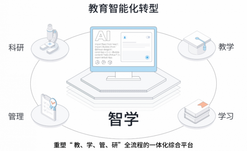 具体来看,在“教”的场景中,平台通过“智教助手”为教师提供智能备课、智能组卷、数字人建课、虚拟助教答疑等能力,帮助教师从重复性案头工作中解放出来,把更多精力投入教学设计与课堂创新;在“学”的场景中,“智学引擎”可通过学前诊断、学中导航和学后优化,帮助学生形成全景学习画像,让学习从“题海战术”走向“精准做对题”;在“管”的场景中,“智管中枢”可实现教学资源全量预检、课堂状态实时巡检、关键指标异常预警和考试作弊检测,推动教学管理从“事后追溯”走向“实时响应”;在“研”的场景中,“智研助手”则围绕文献综述生成、科研情报问答、全链路科研辅助和成果聚合管理,帮助师生将更多精力回归科研创新本身。 内容来自www.chinaedunet.com