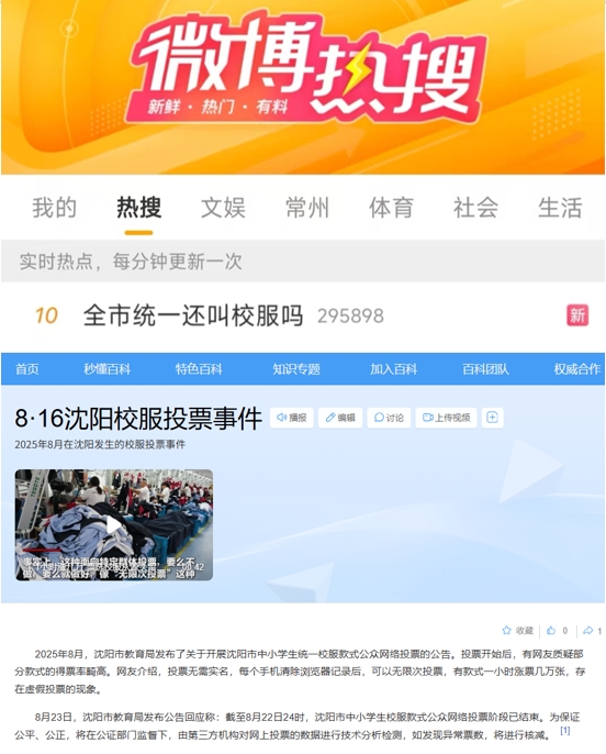 沈阳的乱象则体现在投票形式化与民主失真,让“公开投票”沦为一场闹剧。2025年8月,沈阳首次启动校服网络投票时,因技术漏洞出现“清除缓存可无限次投票”的情况,部分款式一小时涨票数万张,刷票嫌疑引发广泛质疑,“全市统一还叫校服吗”话题冲上微博热搜。而在重启投票时,当地更是设置“传播禁令”,严禁将投票信息下发至家长群、班主任工作群。此举引发广泛争议,不少家长和教育界人士指出,这实质是“偷偷摸摸的假民主”,剥夺了家长的知情权与全社会的监督权。