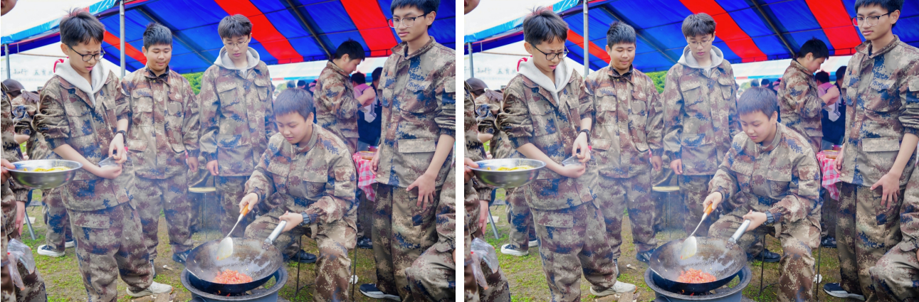 中午的灶台烟火气最是动人。同学们分工明确,有的生火,有的择菜,有的翻炒,土灶上的锅铲叮当响,空气中弥漫着川菜的鲜香:回锅肉的醇厚、番茄蛋汤的酸甜、凉拌黄瓜的清爽,都是大家亲手烹制的味道。当第一盘菜出锅,当第一碗汤端上桌,大家围坐在一起,品尝着自己亲手做的饭菜,脸上满是幸福的笑容。这不仅仅是一顿午餐,更是劳动成果的见证,从食材到餐桌,每一步都凝聚着汗水,每一口都饱含着对劳动的尊重。
