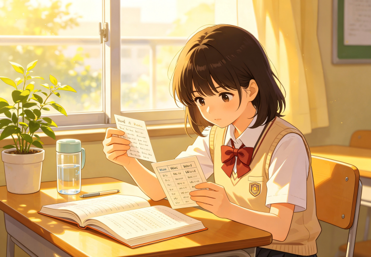 学习节奏平稳,每日固定短时背诵,优先攻克核心词汇,结合日常习题查漏补缺,搭配词根词缀、易混词资料夯实词汇体系,兼顾词汇积累与课内学习,稳步提升词汇储备。