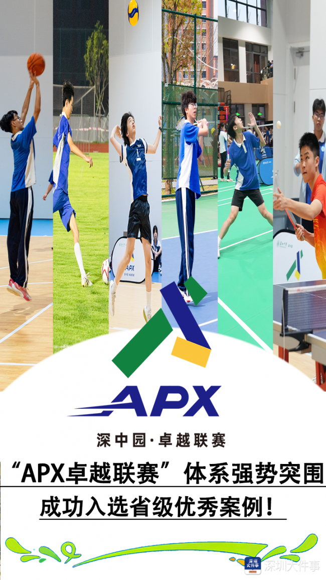 近日,广东省教育厅公布“每天综合体育活动两小时”省级优秀案例榜单,深圳中学高中园报送的“APX卓越联赛”体系在全省131个项目中脱颖而出,成功入选,成为深圳市仅有的2所获此殊荣的高中之一,全省仅8所高中上榜。