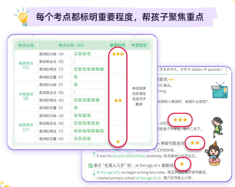 结合历年小升初真题考频,对全部考点做高、中、低频三级划分,明确学习优先级,孩子可聚焦核心考点重点突破,避免分散精力,适配暑假“抓重点、打基础”的核心目标。
