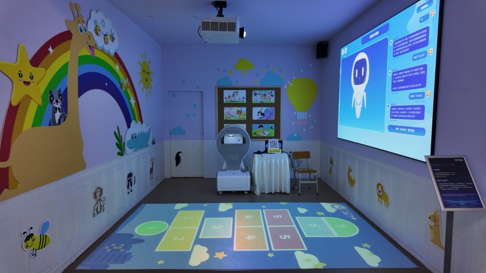 面向K12体能训练与健康教育需求,爱普生推出AI趣味体适能方案,结合高清高亮激光工程投影机与超宽屏激光高清超短焦互动投影机,确保明亮环境下依然具备优质画面,搭载巧智绘AI小智一体机*6,轻松打造不受天气与场地限制的沉浸式运动教学空间,学生无需前往操场,即可利用课间时间在教室、走廊等室内空间开展趣味锻炼。 www.chinaedunet.com网络,www.chinaedunet.com