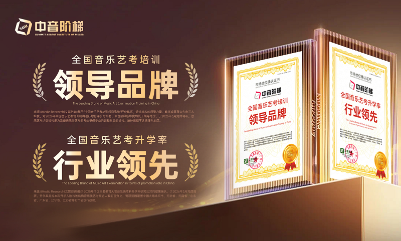 2026年3月,中音阶梯获全球领先的新经济产业第三方数据挖掘和分析机构iiMedia Research(艾媒咨询)授予“全国音乐艺考升学率行业领先”“全国音乐艺考培训领导品牌”两项市场地位确认。